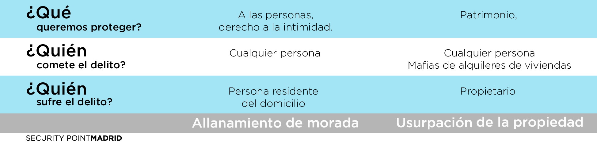 Es un delito que viene determinado por el hecho de entrar en una vivienda y permanecer en ella, la cual es el domicilio diario de una persona, «su morada», sin su consentimiento y en contra de su voluntad, e invadiendo su propia intimidad.  Las penas que se se aplicarán serán de 6 meses hasta 2 años.